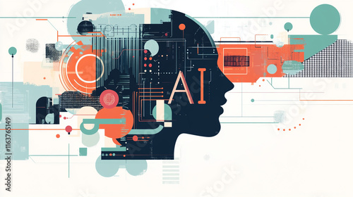 © Ade, Obraz premium Modern 'AI' vector design with abstract technology and big data visuals