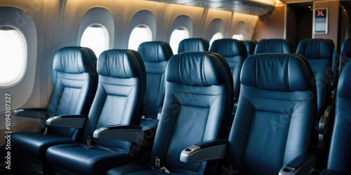 Fototapeta premium Modern airplane interior with comfortable leather seats and natural lighting