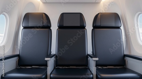 © WisChi, Fototapeta premium Modern Airplane Seats with Individual Screens Comfortable Economy Class Interior Design