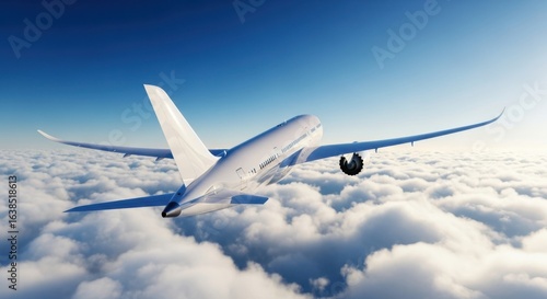 © MST, Obraz premium Modern Airplane Soaring Above White Clouds in a Blue Sky