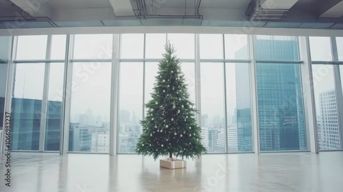 Obraz premium Modern American home minimalist Christmas tree with white and green decor