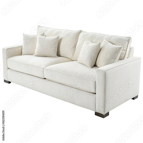 © JAKEYA, Obraz premium Modern and comfortable white sofa with cushion perfect for stylish home or office interiors