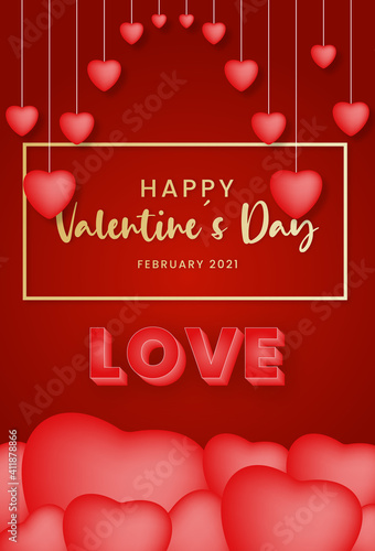 Naklejka premium Modern and Creative 3D Heart Style Valentine's Day Poster