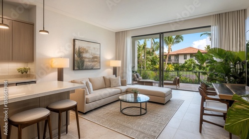 Fototapeta premium Modern and Elegant Living Room with Natural Light and Green View