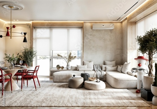 Fototapeta premium Modern and luxurious living room in a minimal concept design..