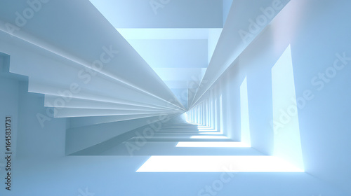 © z, Fototapeta premium Modern and Technological Abstract Tunnel Structure with Light Blue and White in Pure White Background