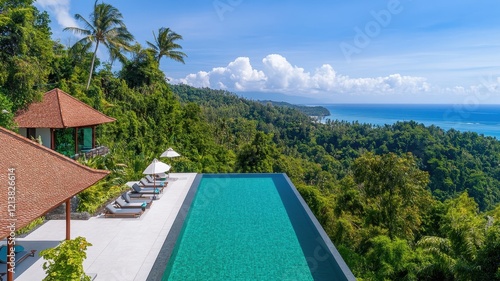 Obraz premium Modern angular luxury home perched on a lush hillside, blending...