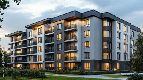 © kenza07, Fototapeta premium Modern Apartment Building at Dusk