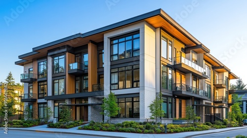 Fototapeta premium Modern apartment building exterior with balconies and contemporary design...