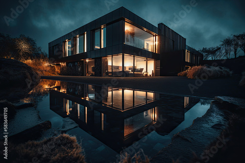 Obraz premium modern apartment building in concrete style with pool created with Generative...