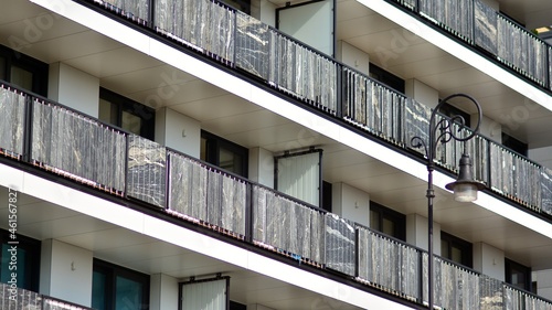 Fototapeta premium Modern apartment building. Modern urban architecture and details of building...
