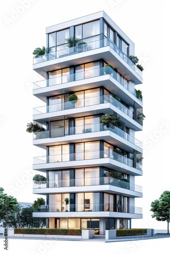 Obraz premium Modern apartment building, white background