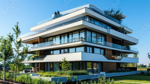 Obraz premium modern apartment building with a unique facade, large balconies, and...