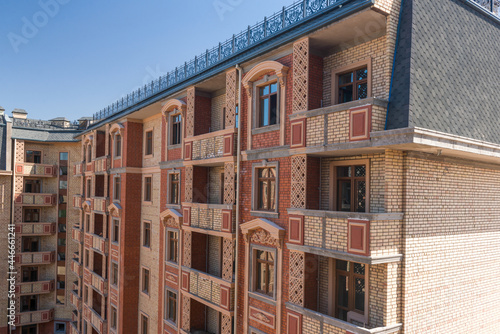 Naklejka premium Modern apartment complex design. Building under construction