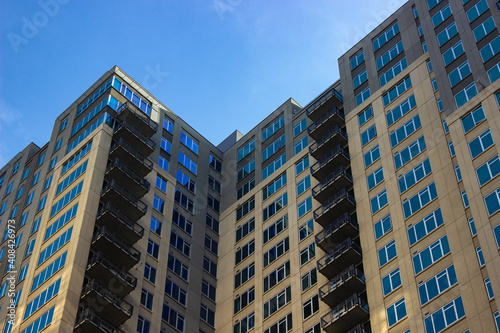 Obraz premium modern apartment complex, Urban design, Shadow casting over a modern high...