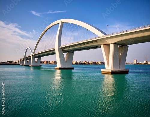 © estehgelas, Obraz premium Modern arch bridge spanning a body of water
