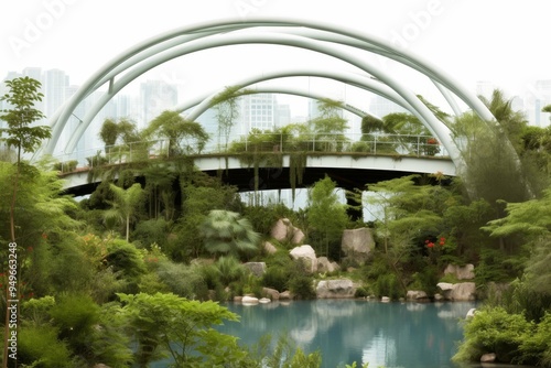 Naklejka premium Modern Arched Bridge Over Lush Urban Park
