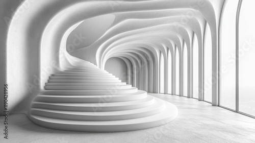 Obraz premium Modern architectural design featuring a spiral white staircase in an open...