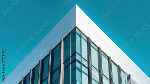 Fototapeta premium Modern architectural design showcased in a striking building corner against a clear blue sky during midday