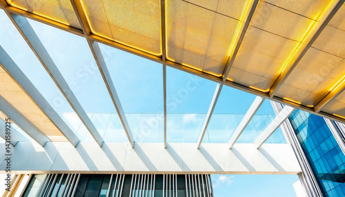 © Nuibai, Obraz premium Modern architectural design showcasing intersecting lines and natural light in an urban environment during daytime