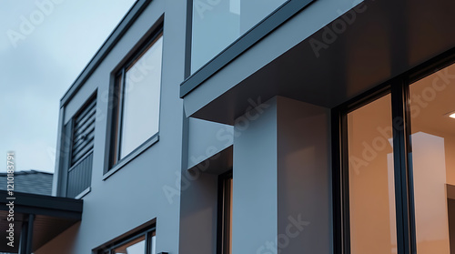 Fototapeta premium Modern Architectural Design: Sleek Grey House Exterior with Large Windows