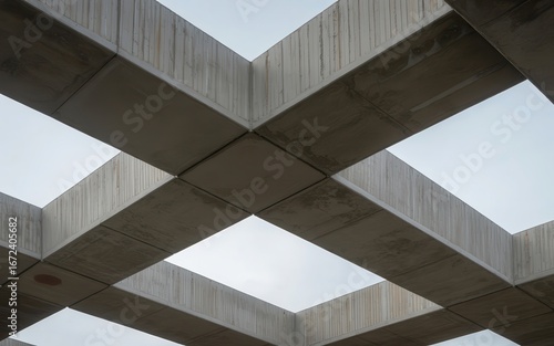 Fototapeta premium Modern architectural design with intersecting concrete beams creating a...