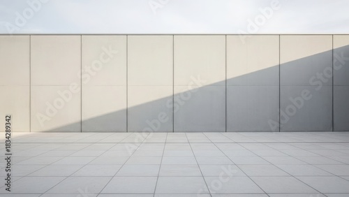 © image exclusive, Obraz premium Modern architectural facade with dramatic shadow play on a clear day