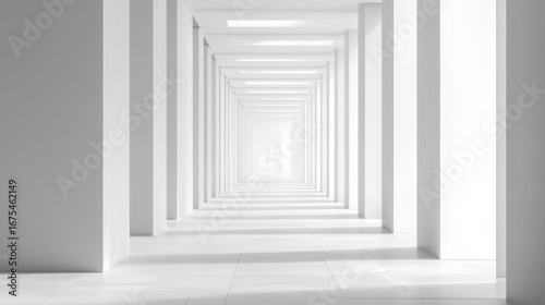 Fototapeta premium Modern architectural hallway with columns and bright ceiling