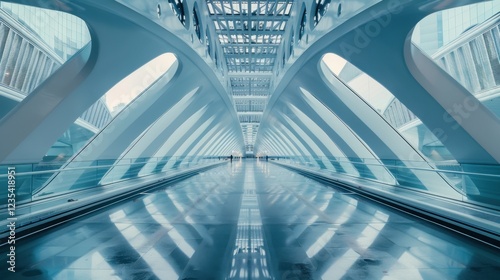 © buraratn, Obraz premium modern architectural interior featuring sleek lines and reflective surfaces, showcasing futuristic design with spacious walkway