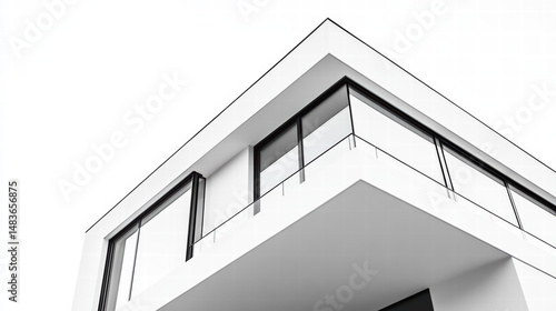 Fototapeta premium Modern Architectural Marvel: An impressive, sharp, contemporary building with a clean and minimalist design. Showcasing a modern architectural style with its strong lines, geometric shapes.