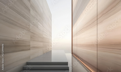 © JuanM, Obraz premium Modern architectural passageway with light reflections at dawn