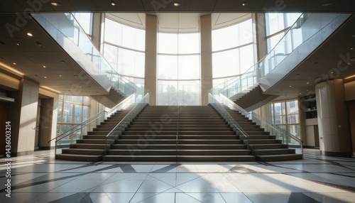 Fototapeta premium Modern Architectural Staircase Design Geometric Patterns & Natural Light