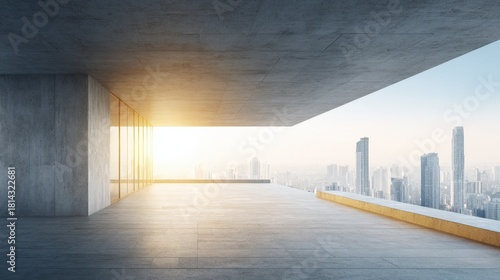 Obraz premium Modern Architecture Balcony with Cityscape View at Sunrise, Contemporary...