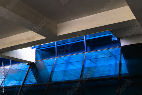 Fototapeta premium Modern architecture: blue glass facade with angular concrete elements