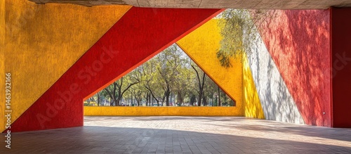 © lisa, Naklejka premium Modern Architecture Building with Geometric Colorful Design and Park