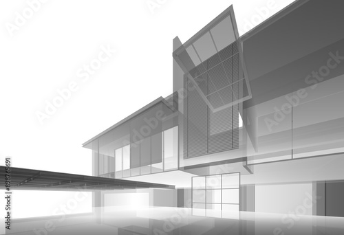 © Yurii Andreichyn, Obraz premium Modern architecture 3d rendering