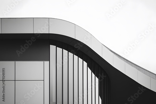 Obraz premium Modern architecture featuring sleek curves and reflective surfaces in an...