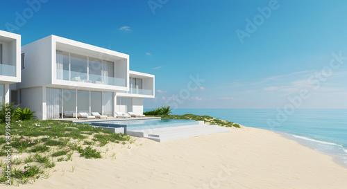 © Herman, Fototapeta premium Modern Architecture Home Along Coastal Beachfront With Ocean View Scenery