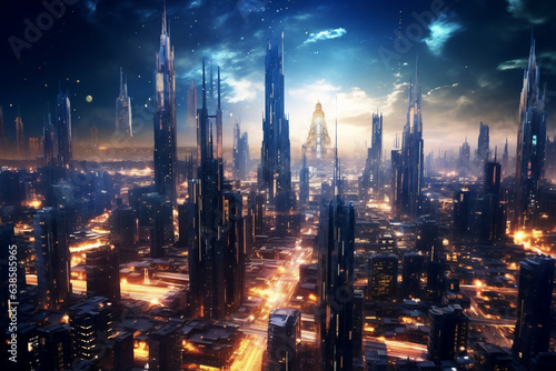© soysuwan123, Fototapeta premium Modern architecture in the city at night.