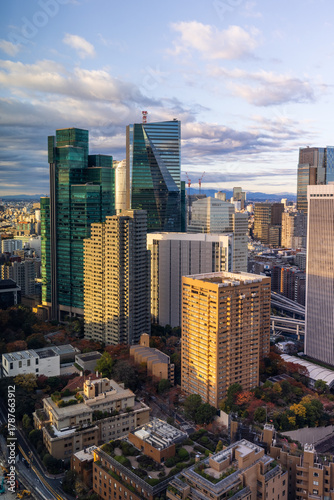 Naklejka premium Modern Architecture in Tokyo, Japan on a sunny morning
