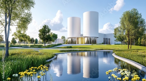 Obraz premium Modern Architecture Reflecting in Calm Water
