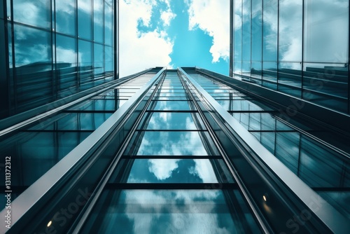 © Zaidi, Fototapeta premium Modern Architecture with Glass Facade and Clouds