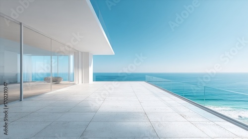 Obraz premium Modern Architecture with Ocean View: Minimalist Coastal Home Design on a...