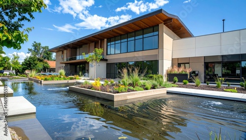 Obraz premium Modern Architecture with Water Features and Landscape Design Elements