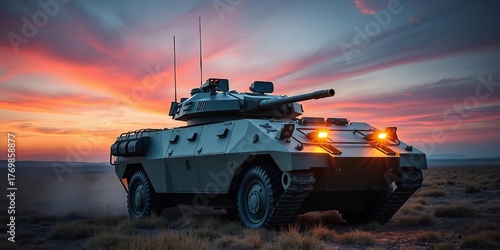 © DITSARAPHAN, Obraz premium Modern armored infantry fighting vehicle on a field, infantry, equipment