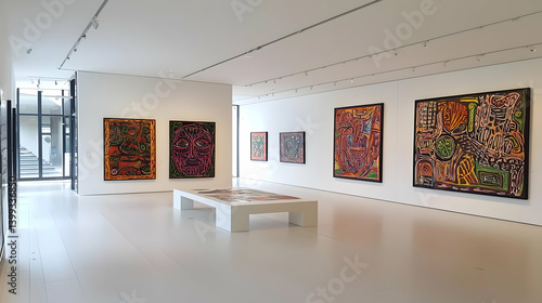 Fototapeta premium Modern Art Exhibition Hall With Colorful Paintings
