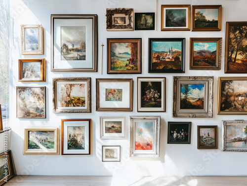 © Khelga Volkova, Fototapeta premium modern art gallery wall with various framed artworks