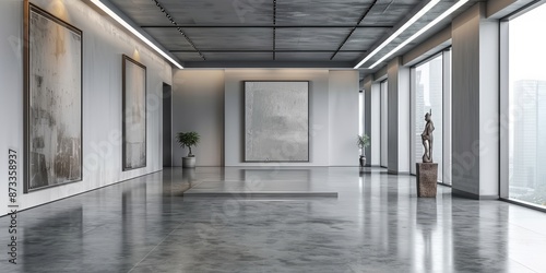Fototapeta premium Modern Art Gallery with Minimalist Interior Design and Large Windows