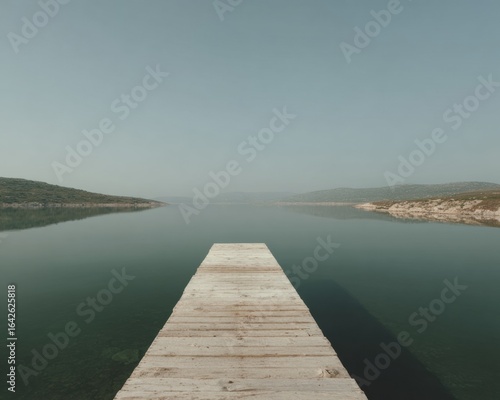 © Ryzhkov, Fototapeta premium Modern Authentic Investor Calm Landscape Premium Financial Planning Concept with Wooden Dock and Lake for Corporate Marketing and Social Media Campaigns