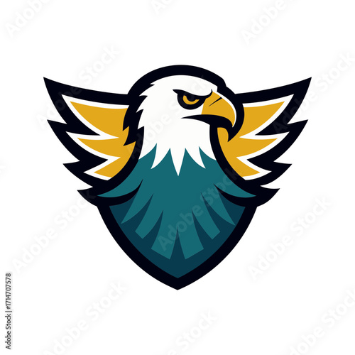 © Jadab Chandra Ray, Obraz premium modern bald eagle emblem with swooping wings vector art